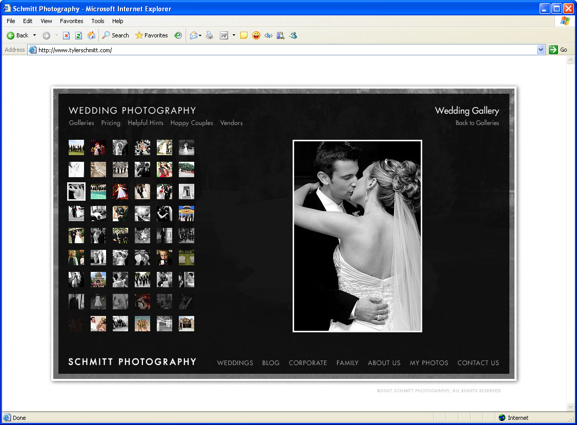 Corporate/Institutional Web Sites Title: Schmitt Photography Web Site Client: Schmitt Photography Art Director: David Guillory Photographer: Tyler Schmitt Programmer: David Guillory