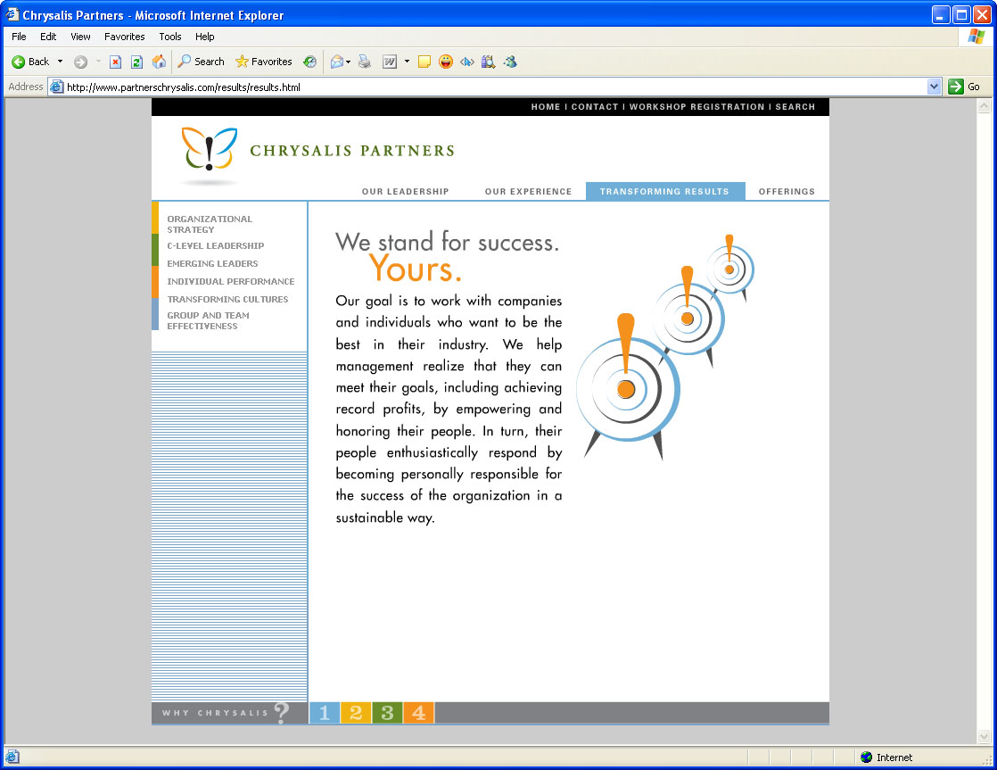 Corporate/Institutional Web Sites Title: Chrysalis Web Site Client: Chrysalis Creative Director: David Lerch Copywriter: Scott Redepenning Programmer: John Duplechin