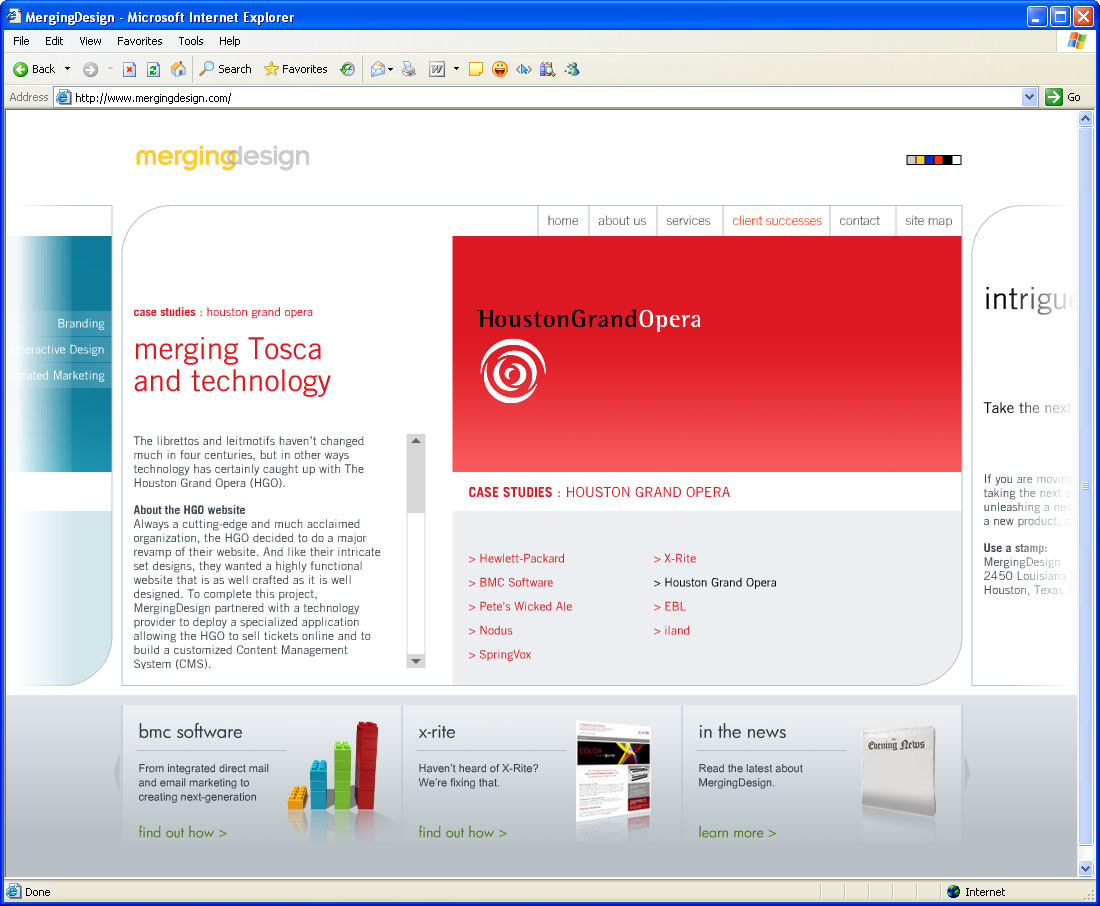 Self Promotional Web Sites Title: MergingDesign Web Site Client: MergingDesign Creative Director: Mark Adams Art Director: Sonja Kramer Copywriter: Mark Adams Programmer: Drew Ehrgott