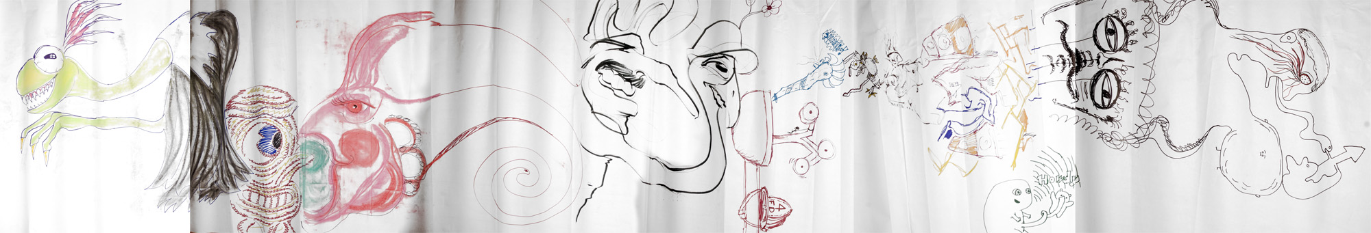 Collaborative drawing exercise. The final piece was over 10 feet long. Click on the "full size" icon above the image to see more detail from everyone's work.